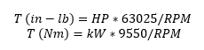 The first thing that we must do in selecting the proper jaw type is to calculate the torque and application service factor. Torque is relatively easy and straight forward to calculate. It can be done with the following formulas.